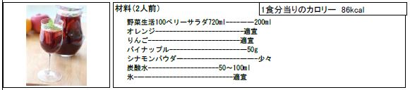 ②大きめのボウルにフルーツ、冷やした野菜生活100ベリーサラダ、炭酸水、氷を入れる。