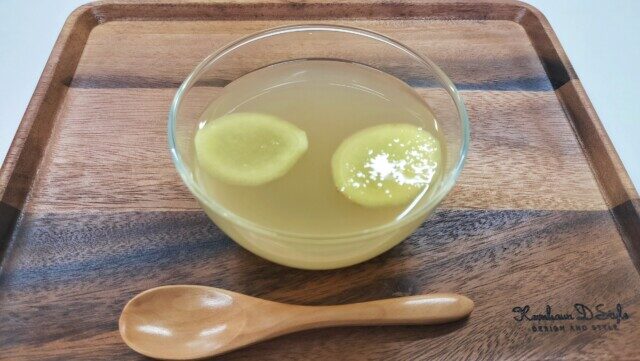 ④お好みでしょうがのスライスを浮かべて出来上がり。