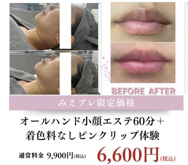 オールハンド小顔エステ60分+着色料なしピンクリップ体験 肌管理専門サロン Merie